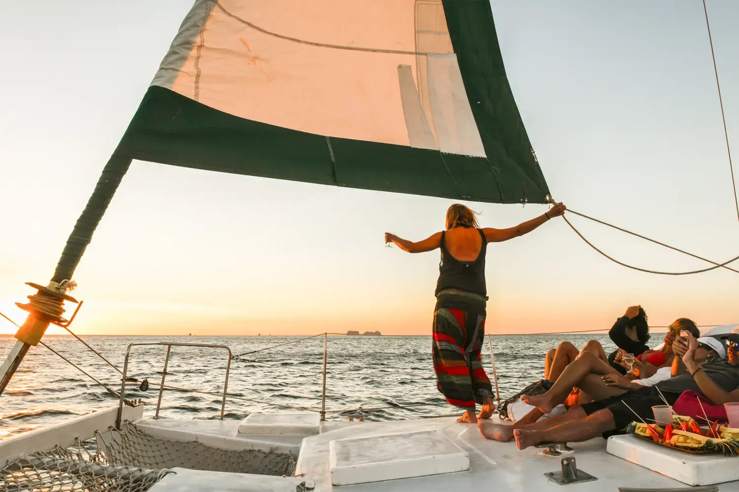 Your private driver takes you to Tamarindo, a vibrant surf town full of energy and character. Wander through shops and boutiques or relax on the beach. In the afternoon, board a Sunset Catamaran Cruise: enjoy music, open bar, snorkeling, and golden-hour views as you sail back toward the coast. Dine in one of Tamarindo’s acclaimed restaurants before returning to Casa Chameleon.